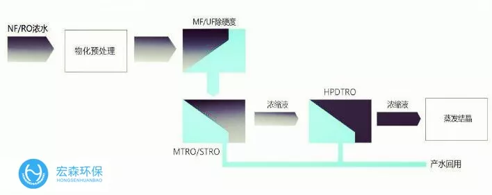 宏森作為一家專注于膜工藝處理垃圾滲濾液的成熟的企業,擁有豐富的DTRO膜應用經驗,擁有超過60個DTRO項目業績,經過與多家滲濾液工程公司和設計院聯合開發,成功驗證并實施了使用DTRO膜技術對NF-RO進行減量化的工藝。該工藝簡單可靠,無需預處理,不產生無極污泥。